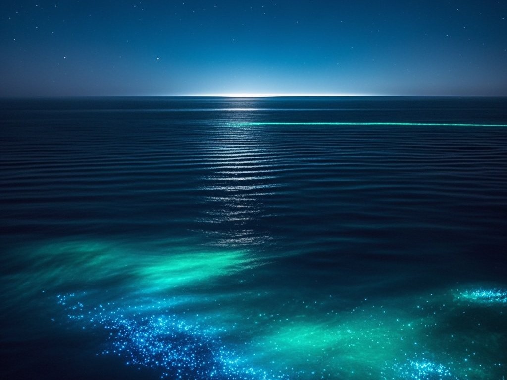The glow comes from tiny plankton. When they get disturbed, they flash light to protect themselves. This natural light show only happens under special calm and dark conditions, making it a rare treasure to see.
