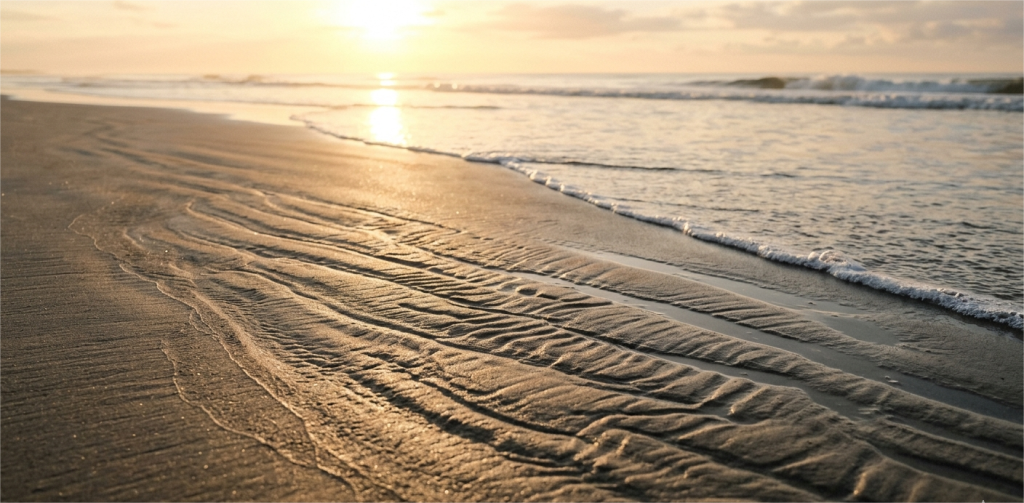 These patterns come from low-energy waves—gentle water that moves slowly at night.