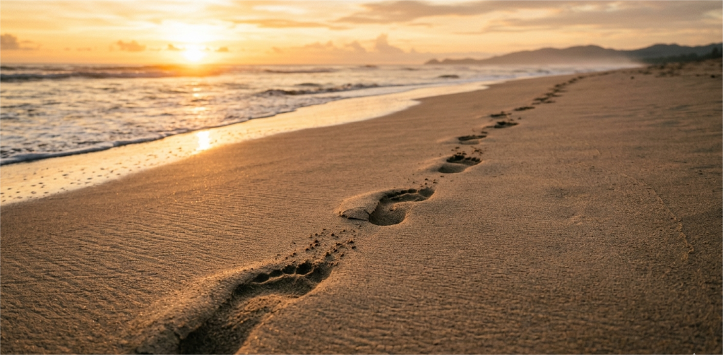 | Smooth sand patterns | Footprints everywhere |