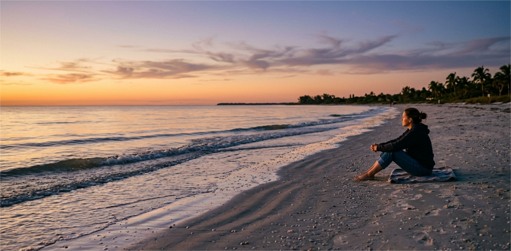 Sanibel sunset mystery drifts in like a soft hush—gold light melting, water breathing, then a sudden splash. I froze once, toes in the tide, heart tapping like a drum.