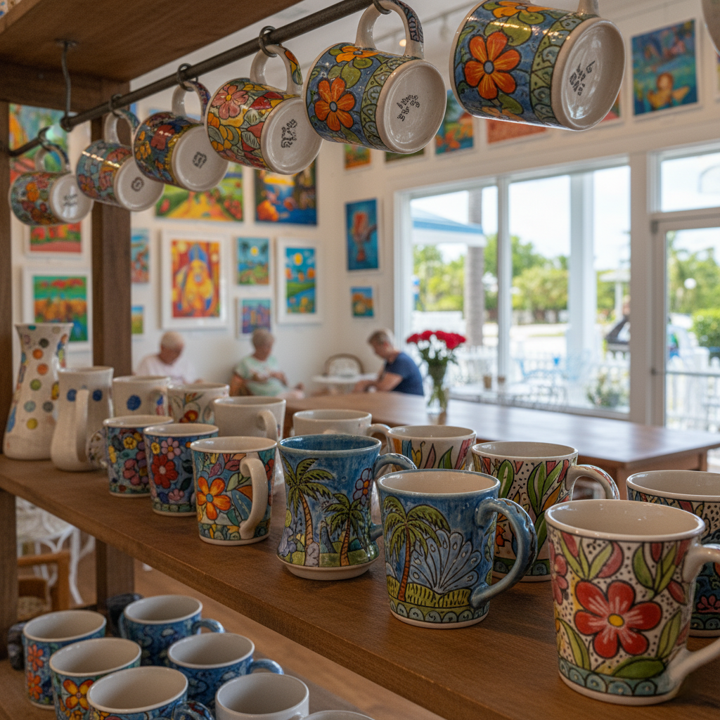 If you’re an art enthusiast looking for a personal experience, The Sanibel Art & Coffee Gallery is a must-visit. It’s a cooperative gallery that features work from over 20 local artists, all within a cozy, coffeehouse-style setting. Visitors can enjoy both the art and a cup of freshly brewed coffee while exploring a variety of media, from watercolors to ceramics. It’s the perfect place to discover local talent while supporting the Sanibel art community.
