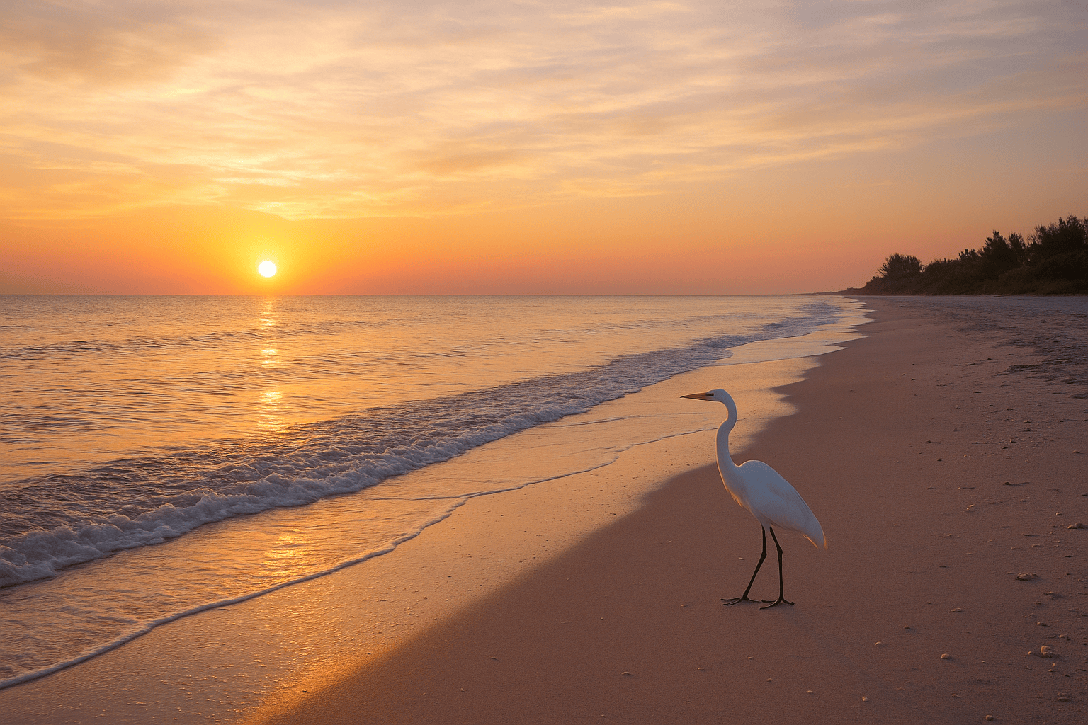 Before the snowbirds return, Sanibel Island awakens in golden calm. Picture soft waves lapping the shore, egrets standing motionless at dawn, and the gentle scent of salt and sand filling the air. This is the Sanibel you don’t find in guidebooks: quiet, unhurried, and perfect for those who crave peace.