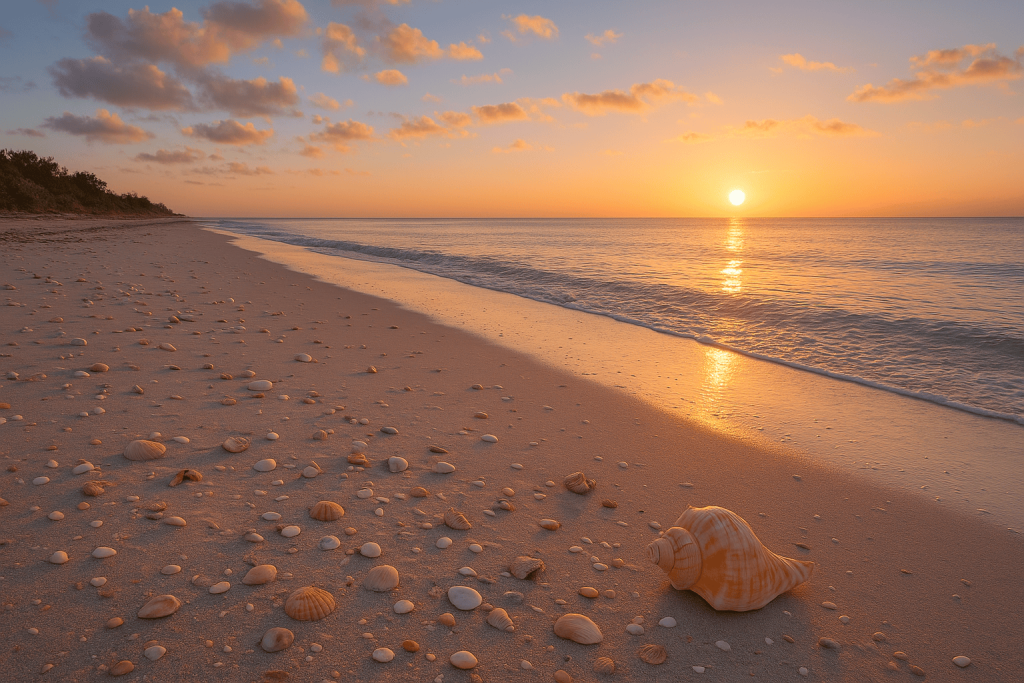 Tip: Walk east along the waterline, not the dry sand — fresh shells usually rest where the last wave curved.