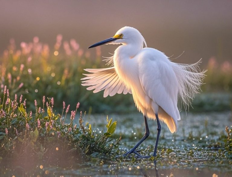 A quiet lagoon at dawn, mist drifting above the mangroves, egrets half-awake — and then, a flash of pink sweeps across the water.
