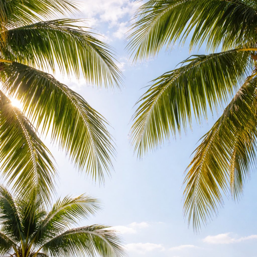 - The sound of palm fronds brushing