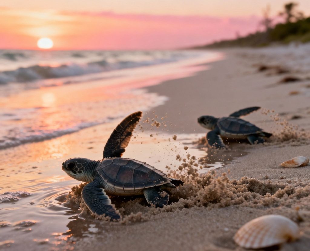 Sanibel sunrise glows like a soft lantern, and tiny hatchlings follow it as if the world is giving them a gentle map home. According to NOAA, baby turtles move toward natural horizon light. Source: NOAA.