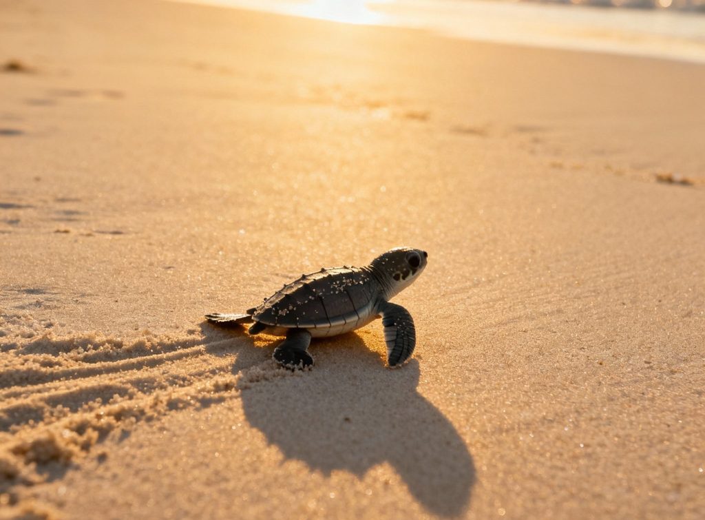 Their little flippers scrape the sand as if they’re writing the first sentence of their life story. Some move confidently. Some wobble. Some look like they’re thinking very hard about their next step. But all of them are heading toward the same direction—the soft shine of the morning ocean waiting for them like an open door.