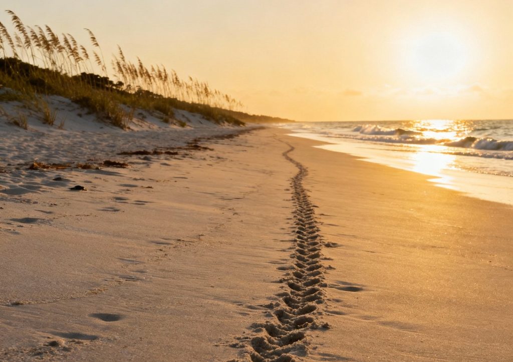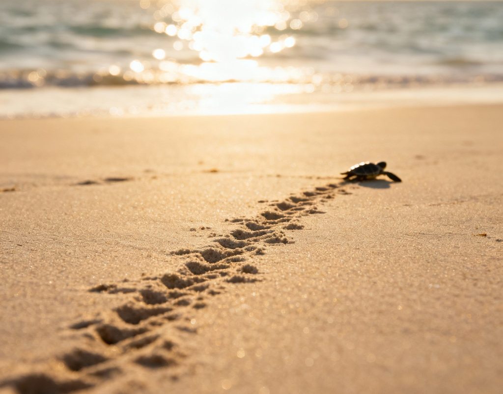 Warm sand. Soft light. Tiny trails left by brave little hatchlings.