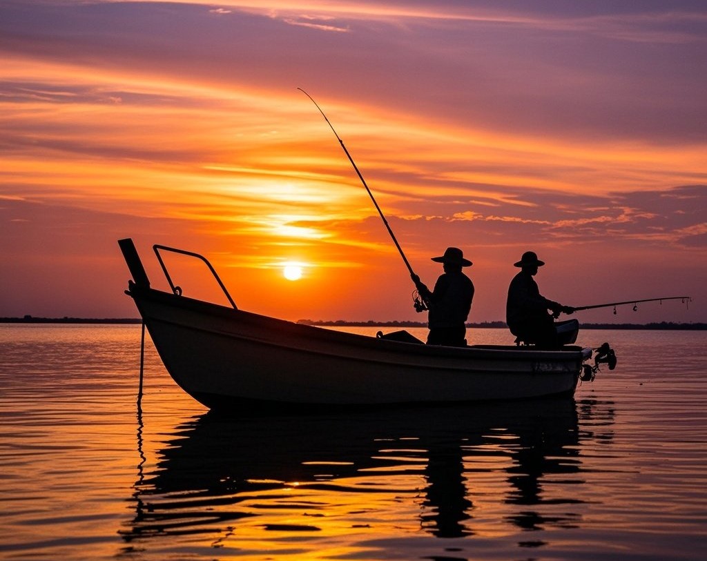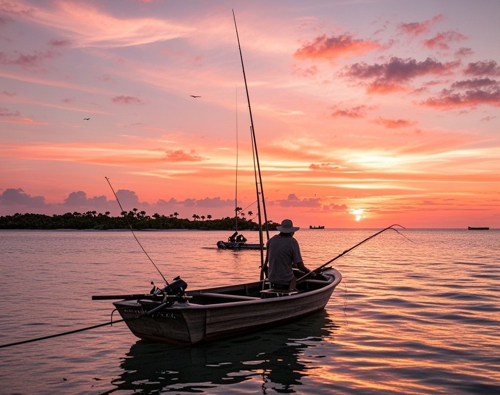 When the sun starts to set, the sky bursts into colors—pink, orange, and gold. This soft light wraps around the sea, turning every fish caught into a golden memory, as if the whole world pauses to admire the beauty.
